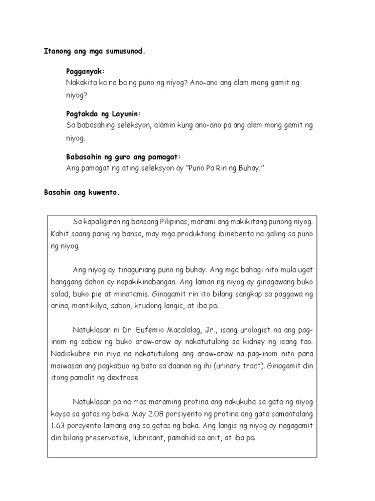Ang pagmamahal ko sa iyo ay singlayo ng buwan. Ang puno ng niyog ang itinuturing na puno ng buhay dahil ang bawat bahagi nito ay nagbibigay ng kapakinabangan sa mga mamamayan kung kayat walang bahagi nito ang matatawag na saying o hindi mahalaga. Al 2012 may ibat-ibang uri ang maikling kuwento.