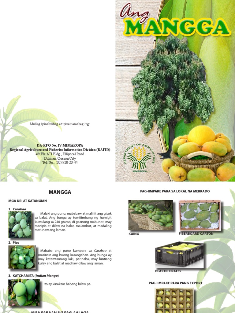 Ang mangga ay kilala sa buong mundo at ito ang madalas inaangkat ng ibang bansa sa mga bansang tropical tulad ng Pilipinas. Kusa naman itong binibigay ng matanda. Kung sapat ang nitroheno dapat hindi na magaabono ng urea o ammonium sulfate.