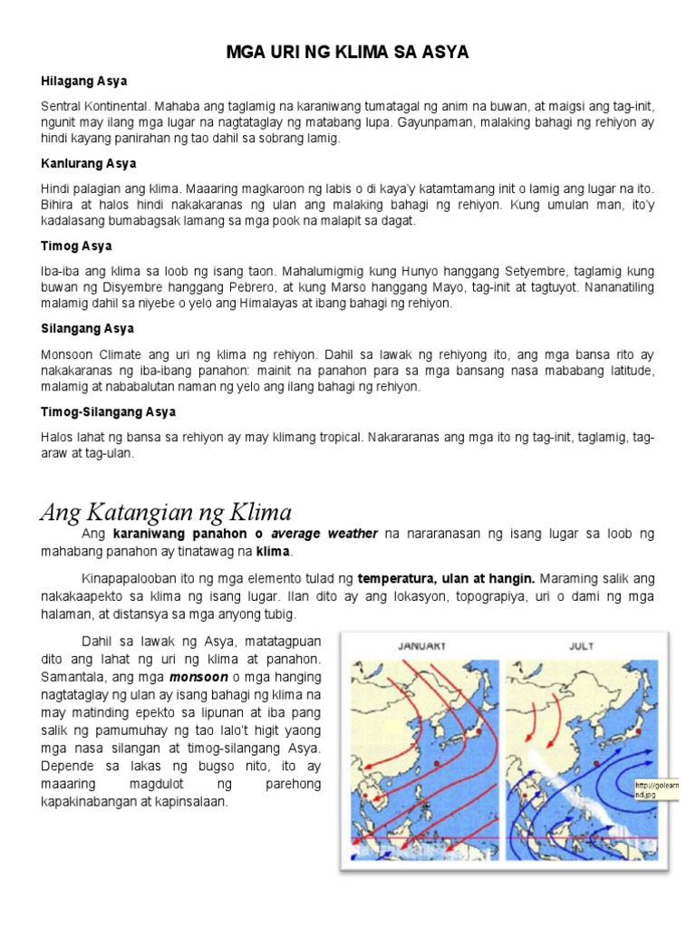 Grade 7 Araling Panlipunan Asya Uri Ng Klima Sa Asya Facebook