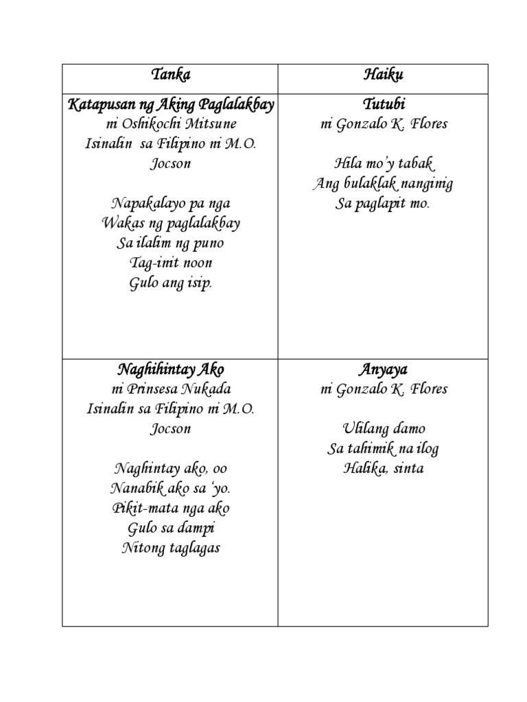 Mga Halimbawa Ng Tanka At Haiku Sjnhs Filipino 9 Facebook
