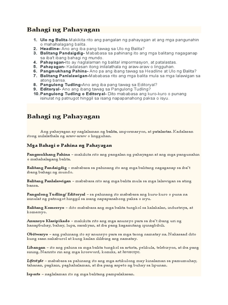 Marami sa mga pambansang pahayagan ay nahahti Ito ay ang sariling paanaw ng sumulat na sa 8 kolum samantalang ang sa tumutuligsa nagtuturo umaaliw o nananawagan pampaaralang pahayagan ay nahahti sa batay sa layunin. Ang kauna-unahang naimprentang peryodiko ay inilathala noong 1605 at. Mga bahagi at uri nito Ano ang Editoryal o Pangulong Tudling.